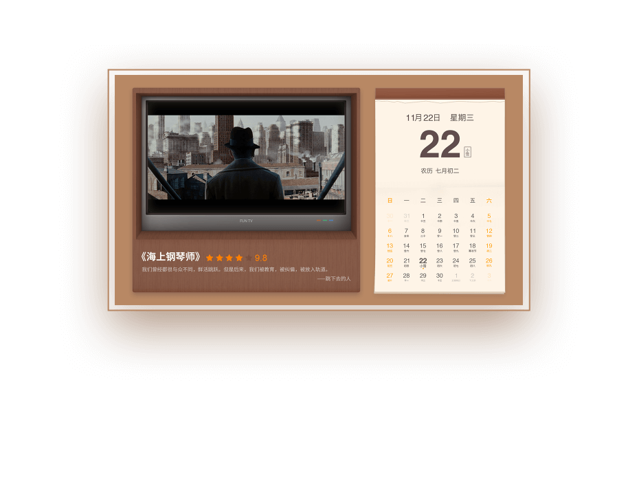 首页信号源接入一步直达,热门导视精彩速推,应用抽屉智能排序,更有贴心日历天气小工具。